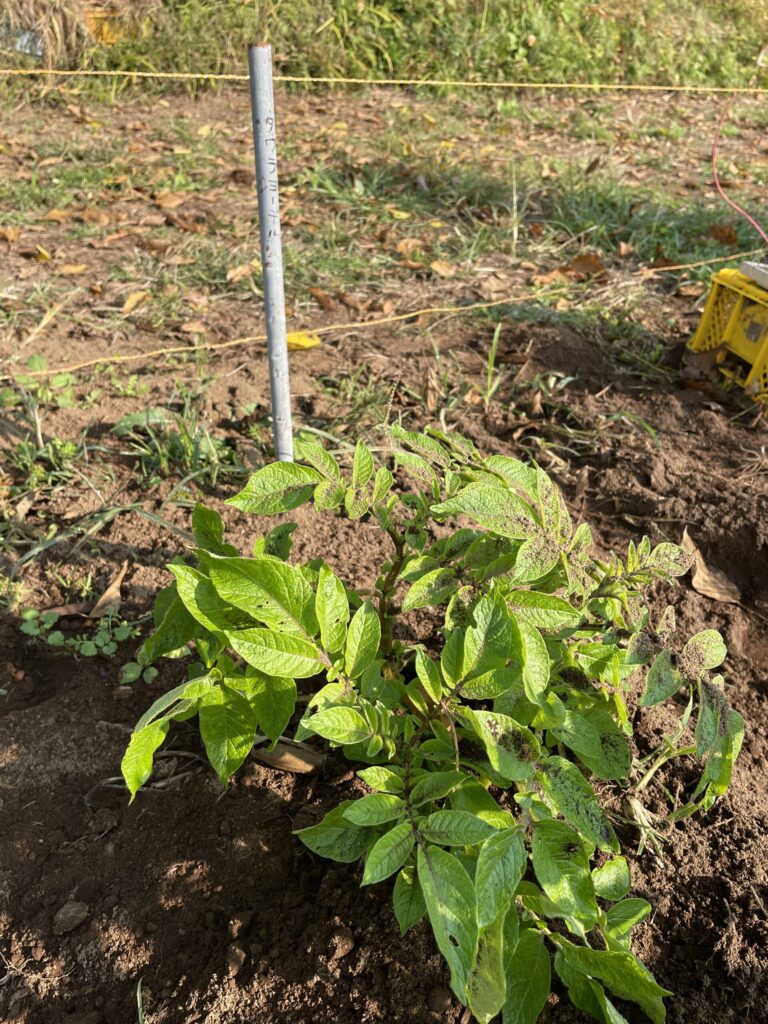 ジャガイモ。 2025年11月17日2025年11月17日 ありのままお野菜 昨日、2回目の追肥・土寄せをしました。 少し遅いです。なぜかといいますと9月7日に植えた種がその後の長雨でほとんど腐ってしまい、 実家の母に泣きついて種を分けてもらい植えなおしたからです。 その種が無事芽が出て今に至るです。 品種は4品種。デストロイヤー・アンデス・レッドムーン・タワラヨーデル。 葉っぱはそれぞれ形が違います。