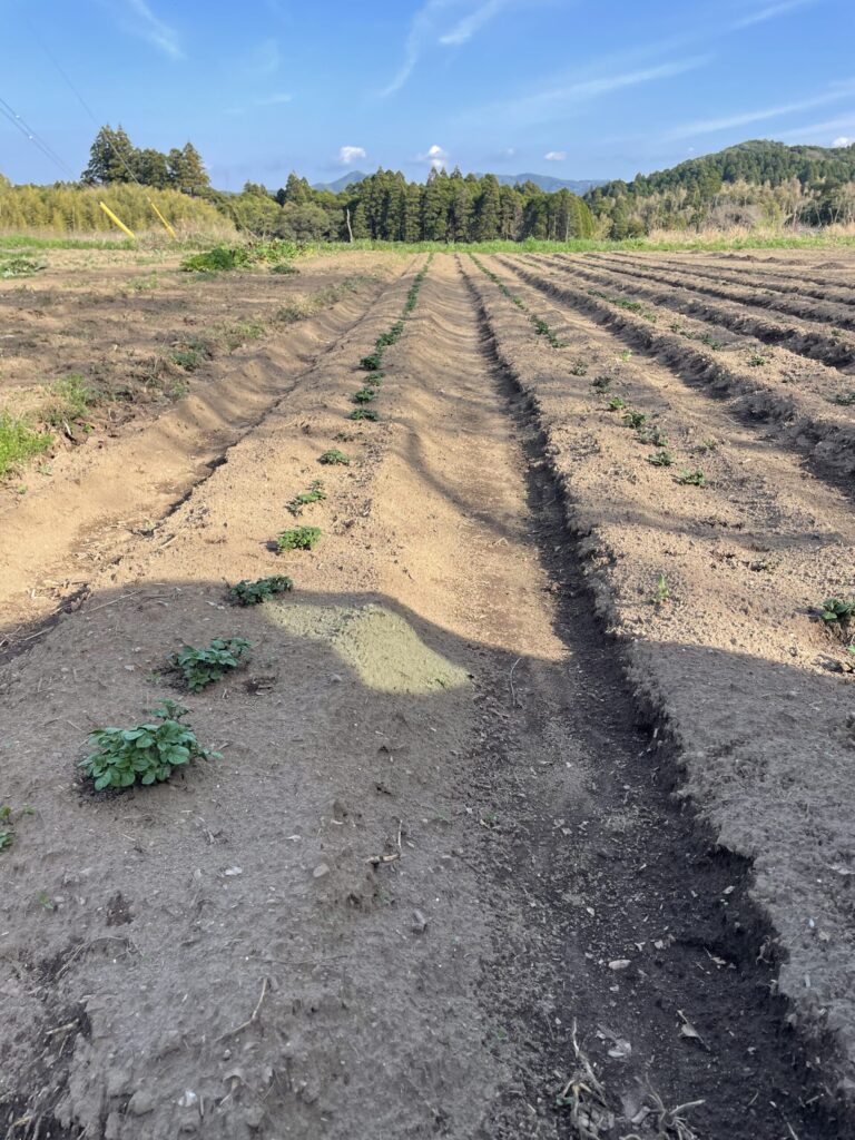 じゃがいも 2026年03月27日2026年03月27日 ありのままお野菜 3月8日に植えたジャガイモの芽が出そろいはじめました。 畝立ての時に子供達にも手伝ってもらったので無事芽が出て安心しました。 何回か土寄せをして美味しいジャガイモを作りたいと思います!