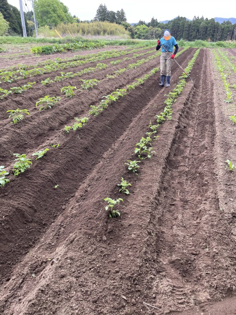 もち麦 2026年04月15日2026年04月15日 ありのままお野菜 もうすぐもち麦の収穫です。 所々いい感じに色づいたものもありました。 ジャガイモも、芽かきと追肥・土寄せをしました。 管理機で土寄せをした後、長女がレーキで株元に土寄せしてくれました。 とても丁寧な仕事をしてくれました!!ありがと~